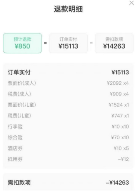据高先生讲述,2月27日,他通过同程旅行平台购买日本航空8月3日至11日北京往返东京的机票,总价15113元。后因行程调整想要改签,却误操作成“退票”,导致被扣除9892元费用。