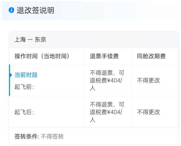 查询5月上海飞往东京的机票发现,相比国内航司,日本航司的退票政策更为严格。据退改签说明,国航、东航在起飞前退款需收取一定比例的手续费,而日本航空、全日空、捷星日本在起飞前均显示“不得退票”。