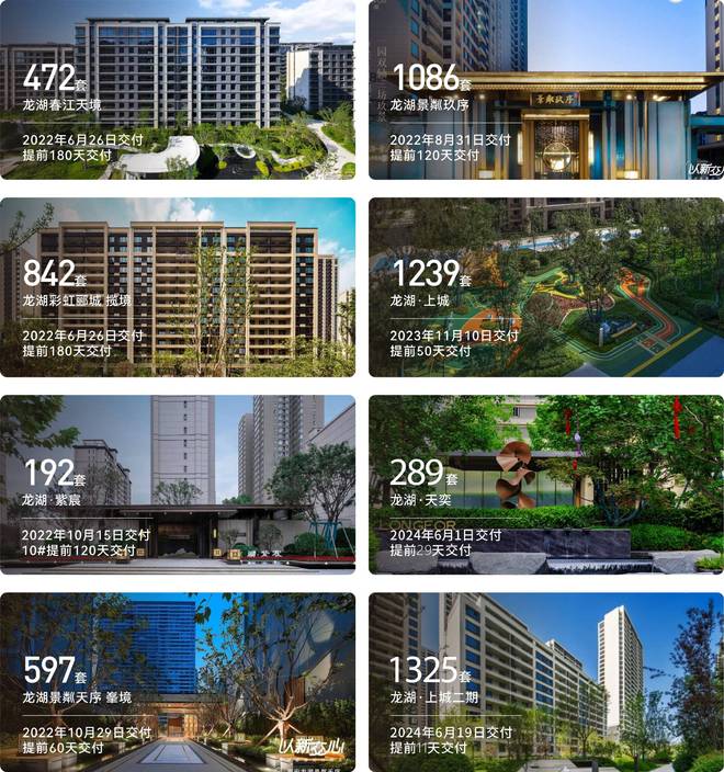 2024年上半年43城121个项目,共计约50000套品质房源如约交付,其中20%的项目提前一个月以上交付,总体满意度超过90%,在2024上半年中国房地产企业,交付规模TOP50排行榜中,龙湖集团位列第8。